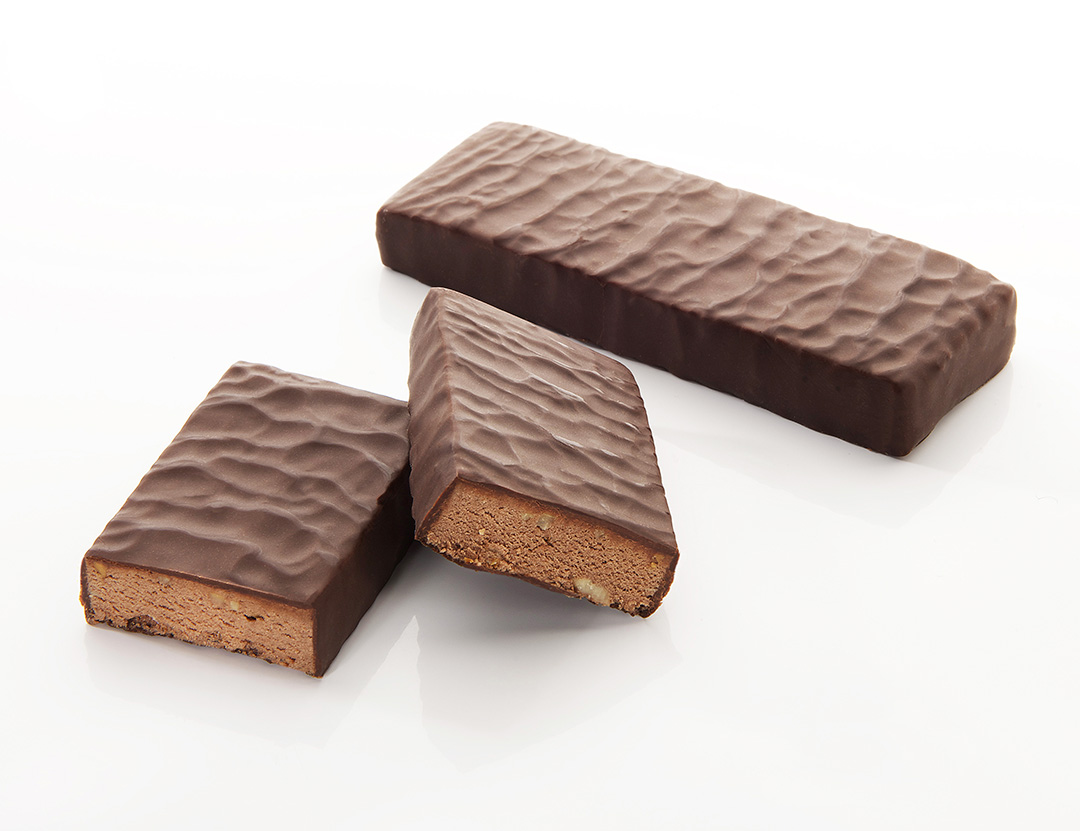 Zarter Riegel nach Art eines Brownies aus Schokolade und Haselnuss